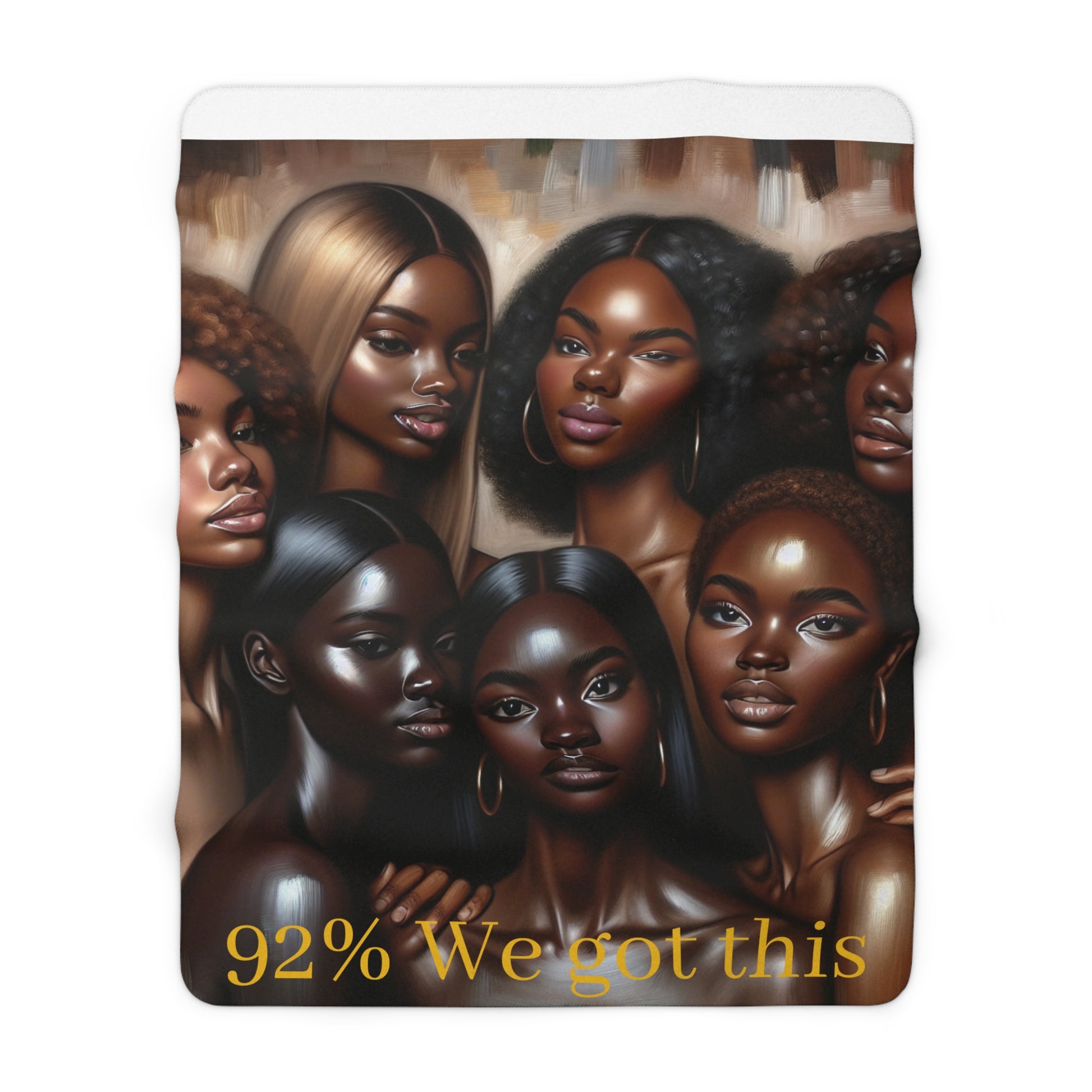 A stylish and empowering black women themed sherpa fleece blanket, featuring the phrase 'we got this'. Perfect for cozying up on the couch or adding a touch of inspiration to any room. This blanket is relevant for Black History Month, Women's History Month, and International Women's Day.